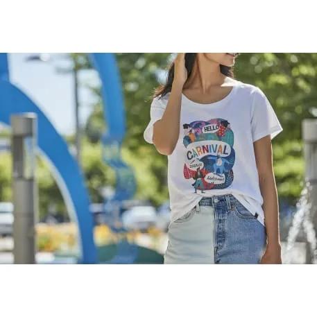 This T-shirt serves as an excellent medium for displaying your brand, with numerous areas available for custom decoration. Your logo or branding can be showcased on various parts of the shirt. This includes the right and left chest, the right and left sleeve biceps, and across the front and back of the shirt. The back yoke offers another prime spot for branding. With options for both horizontal and vertical placement, your branding can be tailored to achieve maximum visibility and impact, making each piece as unique as your brand.